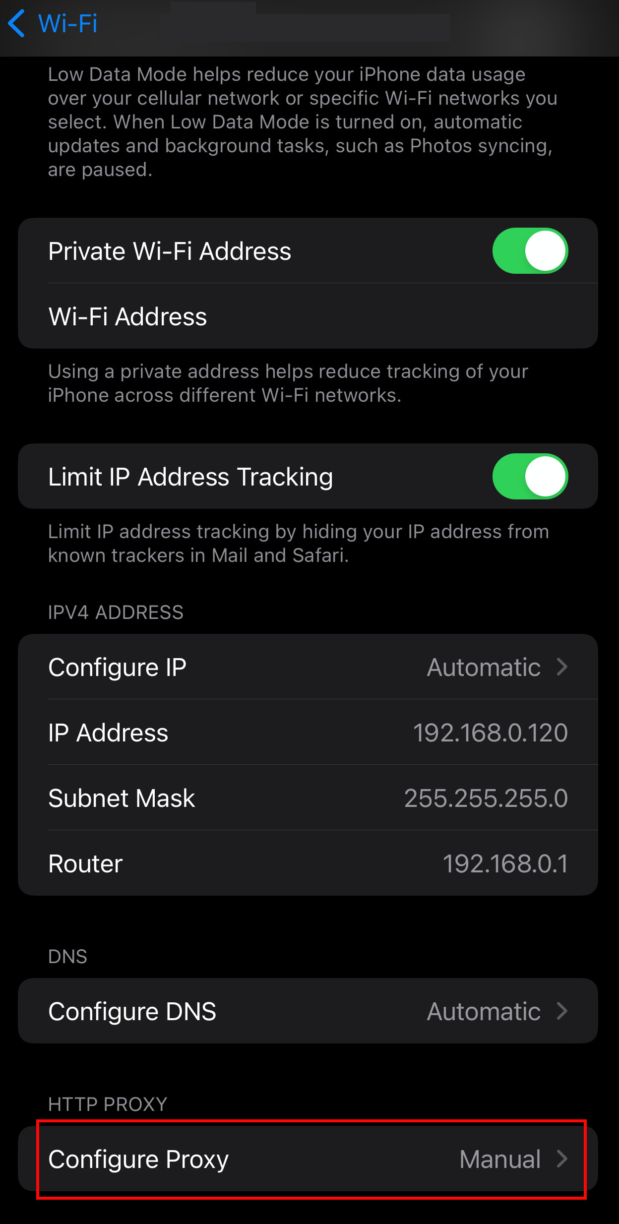 Scroll down to the bottom and click on "Configure Proxy"