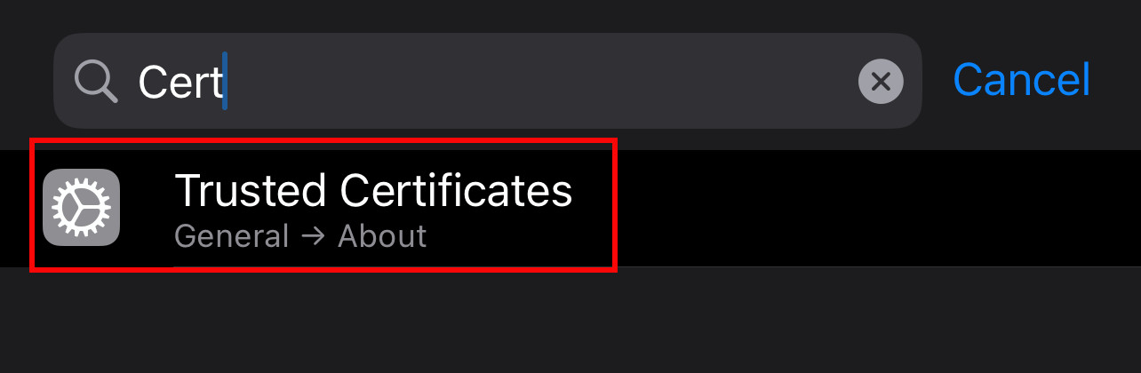 Type "Cert" in the settings search up at the top. You should see "Trusted Certificates" in the results. Click on "Trusted Certificates"