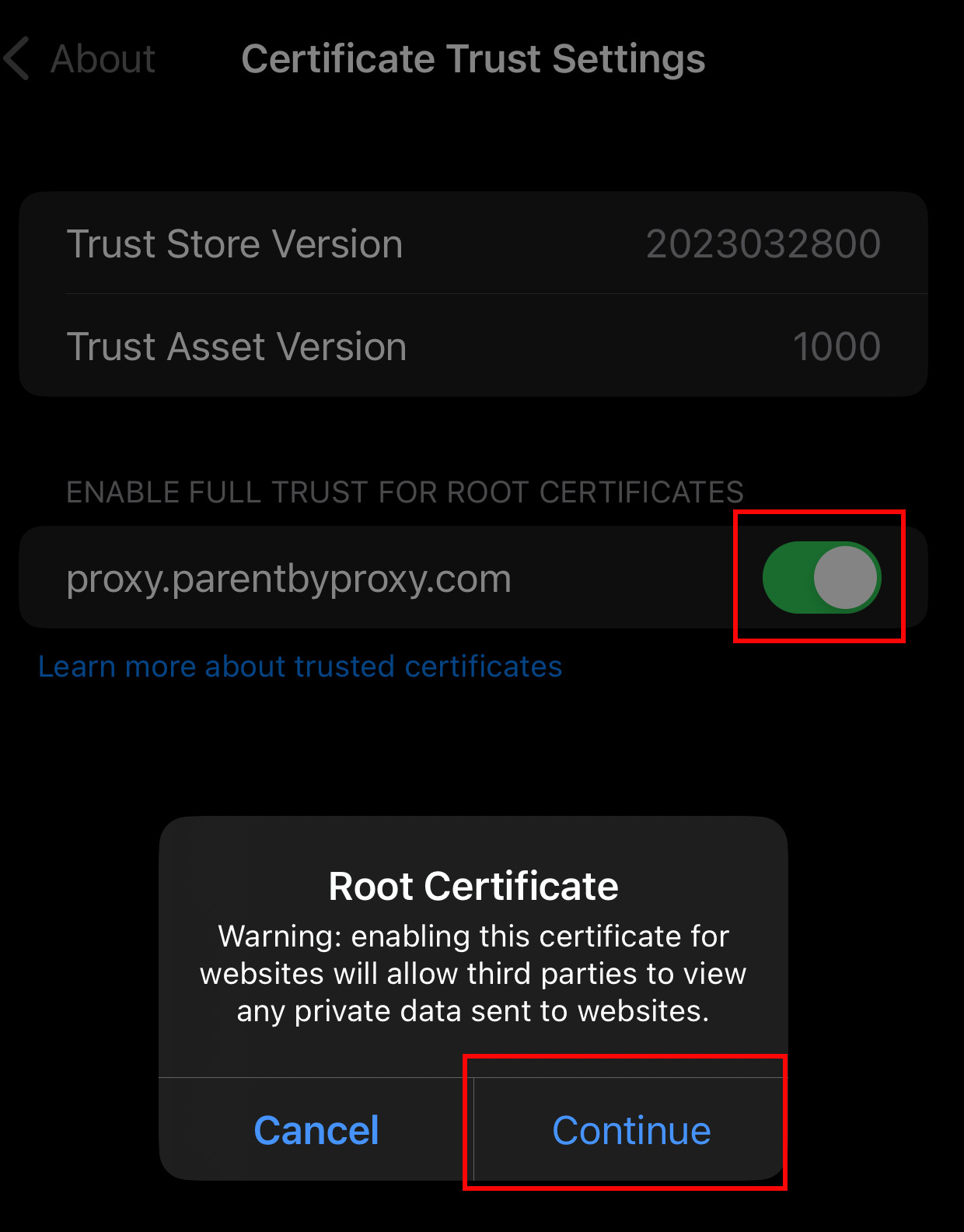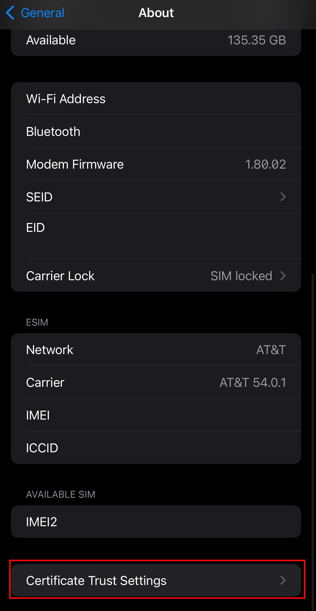 Scroll to the bottom and click "Certificate Trust Settings".
