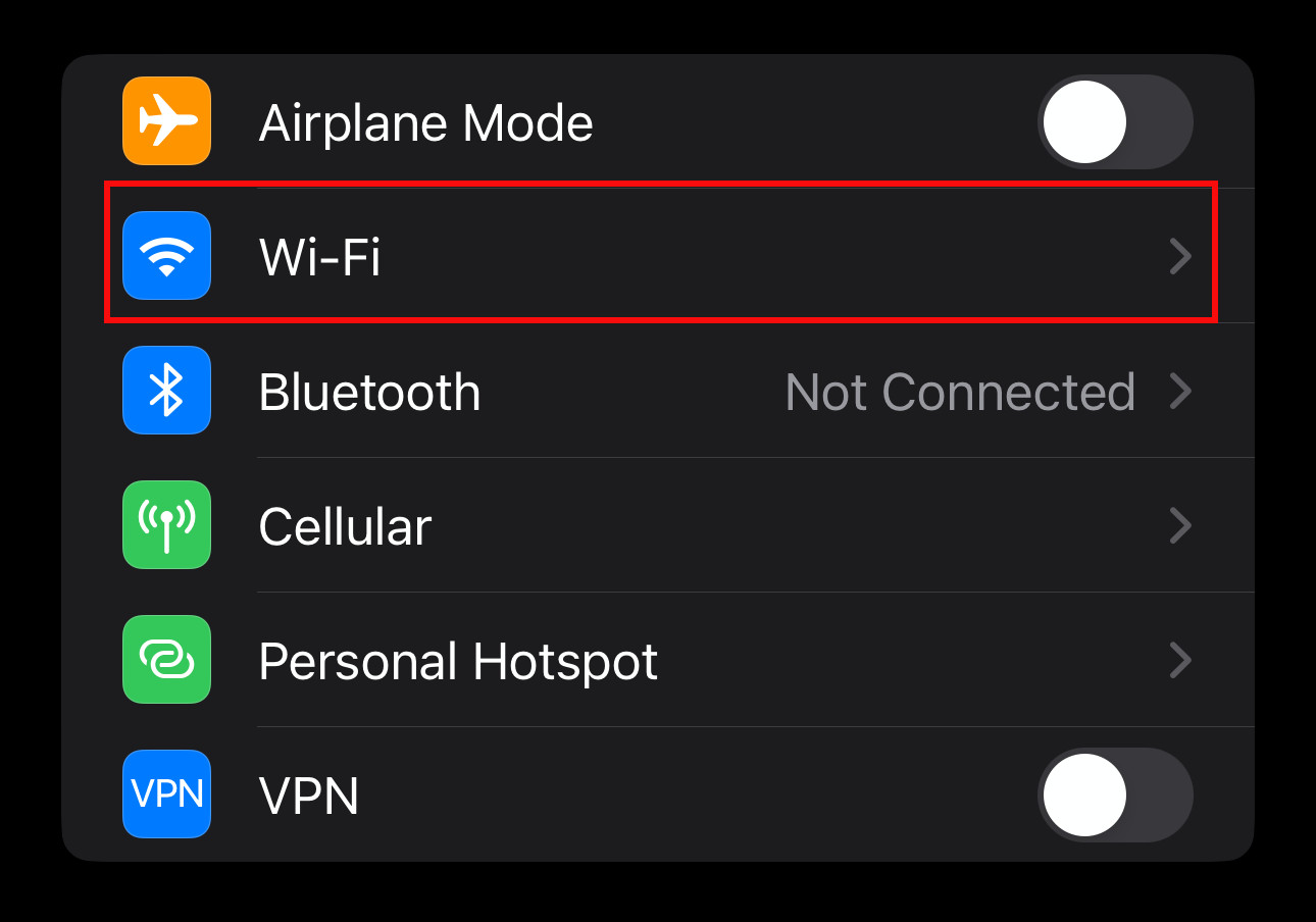 Go back to the first page of the "Settings" app. Click your Wi-Fi settings.